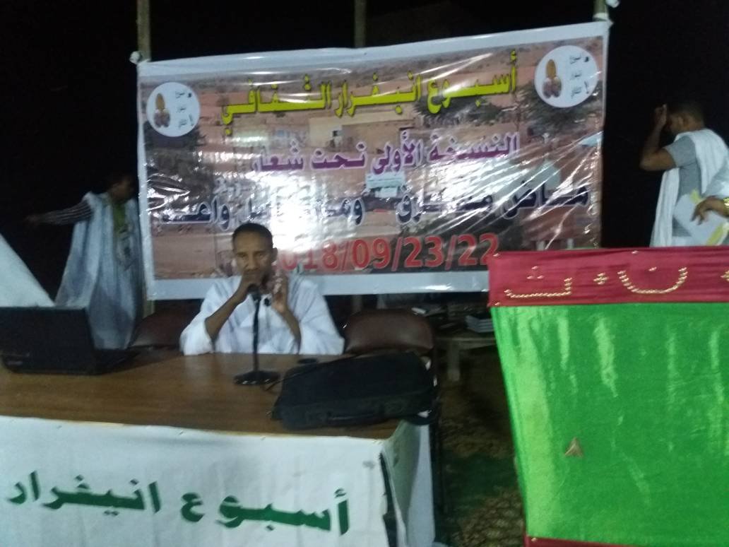 وفي سياق القراءات الأدبية التي تتلى على هامش الحفل ألقى الأديب عبد الله ولد محمد اسنيد “ابيد” قطعة أدبية شعبية توجيهية ترصد أهداف الأسبوع وتصب في سياقاته.
