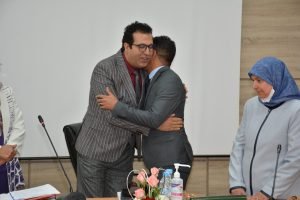 وتمت المناقشة اليوم في مباني جامعة محمد الخامس في الرباط، وتميزت بحضور لفيف من الأساتذة والدكاترة والخبراء كالأستاذة السعدية الصغير رئيسة لجنة المناقشة والأستاذة لطيفة الواراتي التي تولت الإشراف على الطالب أثناء فترة إعداد البحث، والأستاذ الدكتور عثمان احمياني والأستاذ الخبير رشيد بلحبيب، بالإضافة إلى القائم بالأعمال بالسفارة الموريتانية في الرباط وبعض كبار الأساتذة وجمع من الطلبة، وقد أشاد جميع أعضاء لجنة المناقشة بالأطروحة شكلاً ومضموناً، كما نوهوا بجودة وثراء محتوى البحث حيث أحال الطالب إلى أغلب المراجع والدراسات المتعلقة بالموضوع، وأكدوا أن البحث يسد فجوة بحثية هامة في مجال الدراسات المعجمية، كما أثنى المناقشون على المنهجية التي اتبعها الباحث وعلى تحليه بالأمانة العلمية، وقد منحوا البحث درجة “مشرف جداً”، وهي أعلى ميزة تمنح لأطروحات الدكتوراه.